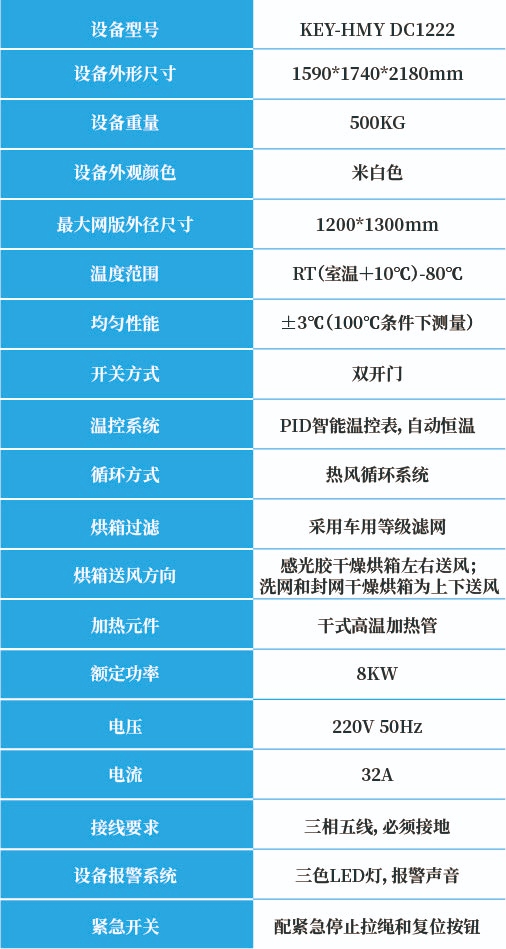 1、热风由上而下循环,使温度均匀分布,达到良好的烘干效果。