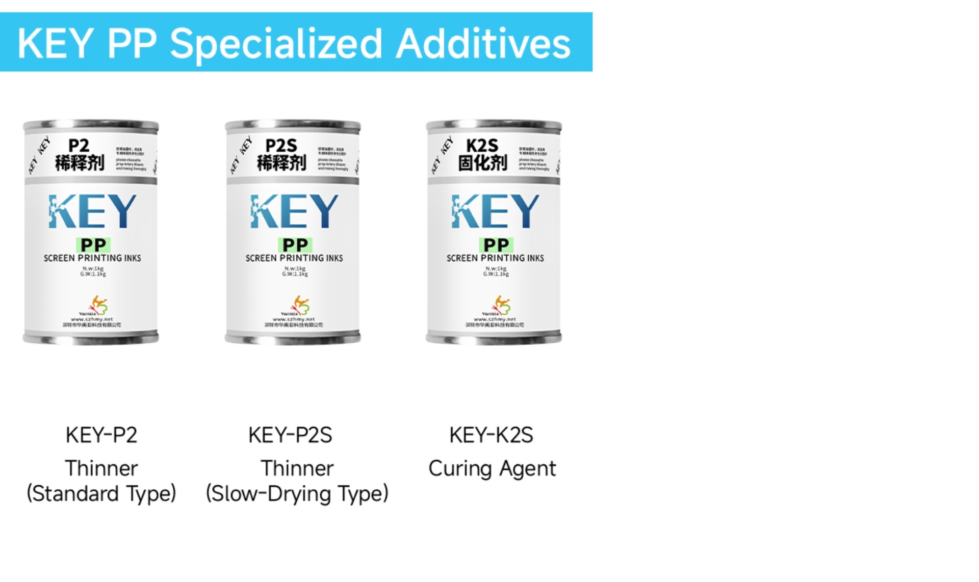 The KEY-PP Series is a high-gloss, fast-drying screen printing ink developed for untreated or lightly pretreated PP materials. Its flame or corona-free application significantly streamlines processes and reduces production costs while maintaining excellent adhesion and durability.